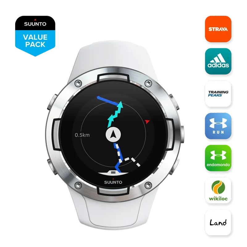 - what’s in the box: suunto 5, charging cable, quick guide, international limited warranty leaflet, safety and regulatory leaflet, suunto sticker
