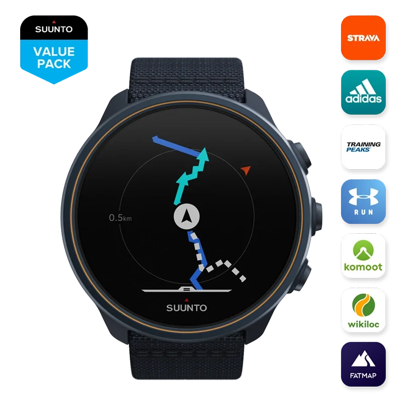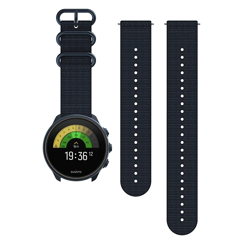 - what’s in the box: suunto 9 baro granite blue titanium, two different length straps, charging cable, quick guide, warranty leaflet